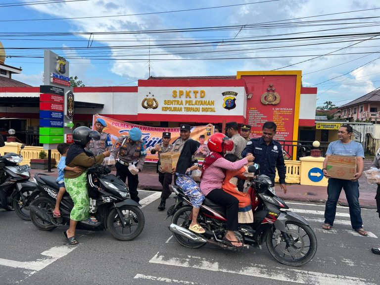 Pangkalan Bun, infokalteng.co.id – Bulan Ramadhan penuh keberkahan, Polres Kibar jajaran Polda Kalteng bagi – bagi takjil kepada warga dan pengguna jalan yang melintas di Jalan Pangeran Diponegoro tepatnya didepan Mako Polres Kobar, Rabu (12/4) Sore jelang berbuka puasa.