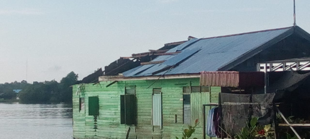 Kuala Kapuas, infokalteng.co.id – Angin puting beliung porak porandakan rumah-rumah warga Sei Tatas Hilir, Kecamatan Pulau Petak, Sabtu sore lalu.
