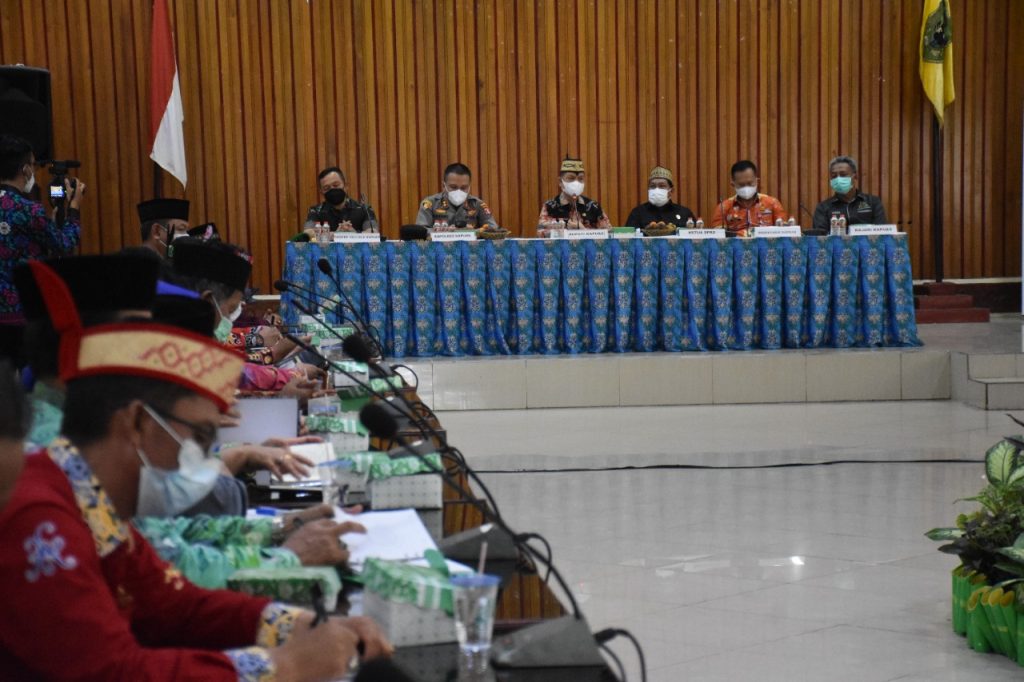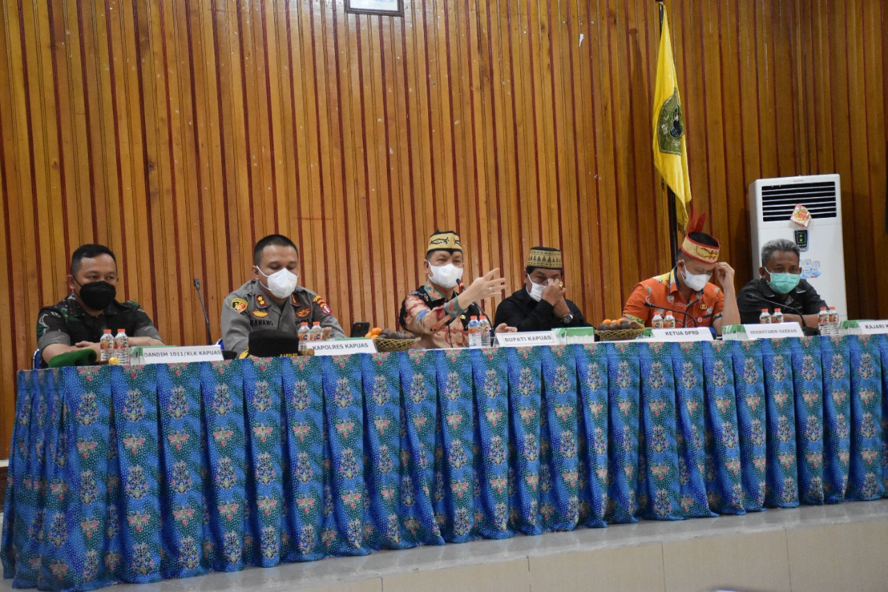 Dalam rapat ini, dipimpin langsung Bupati Kapuas Ben Brahim S Bahat didampingi Kapolres Kapuas AKBP Manang Soebeti, Dandim 1011/KLK Letkol Kav Ferdiansyah, Sekda Kapuas Septedy dan perwakilan Forkopimda. Tampak hadir juga sejumlah Kepala Perangkat Daerah, Camat, Tokoh Pemuda, Tokoh Masyarakat maupun Tokoh Agama setempat.