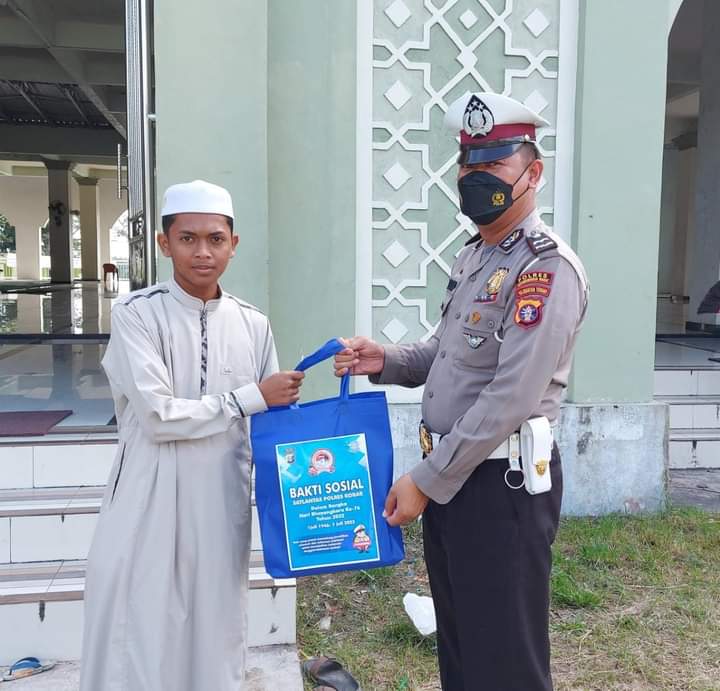 Kapolres kotawaringin Barat AKBP Bayu Wicaksono SH. S.I.K., M.Si. melalui Ps.Kasat lantas kobar Iptu Bayu Caesaria Tri Hardiyanto S.T.K., S.I.K. Bakti sosial merupakan bentuk kepedulian Polri terhadap Tokoh agama Kotawaringin Barat.