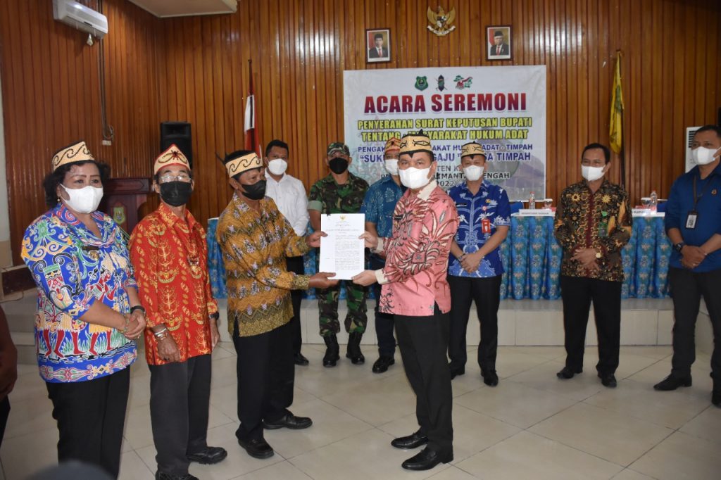 “Hari ini saya berbahagia karena telah ditetapkannya perlindungan dan pengakuan Masyarakat Hukum Adat yang kali ini bagi masyarakat Timpah, untuk itu saya mengajak kita agar bersama-sama melestarian dan menjaga kebudayaan lokal, khususnya budaya Kalimantan Tengah,” imbuhnya.