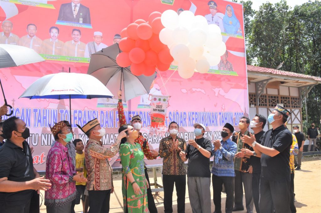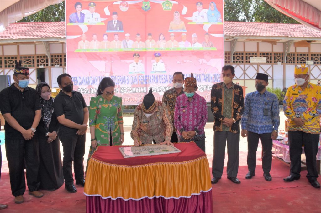 Kuala Kapuas, infokalteng.co.id – Bupati Kapuas Ir.Ben Brahim S Bahat,MM MT didampingi Anggota Komisi III Dewan Perwakilan Rakyat Republik Indonesia (DPR RI) Daerah Pemilihan Provinsi Kalimantan Tengah Ary Egahni Ben Bahat, S.H.,M.H. dan Wakil Bupati Kapuas HM Nafiah Ibnor, mencanangkan Tahun Toleransi dan Menetapkan Desa Batu Nindan sebagai Desa Sadar Kerukunan Tahun 2022, bertempat di Desa Batu Nindan Kecamatan Basarang, Kamis (24/2/2022).