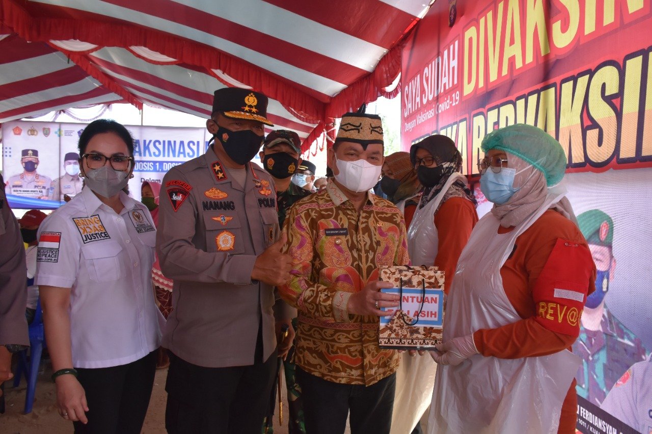Kuala Kapuas, infokalteng.co.id – Bupati Kapuas Ben Brahim S Bahat mendampingi Kapolda Kalteng Irjen Pol Nanang Avianto meninjau vaksinasi massal Covid-19 tahap 1, 2 dan 3 untuk masyarakat yang dilaksanakan di Sei Baras, Kelurahan Selat Utara, Kabupaten Kapuas, Jumat (25/2).