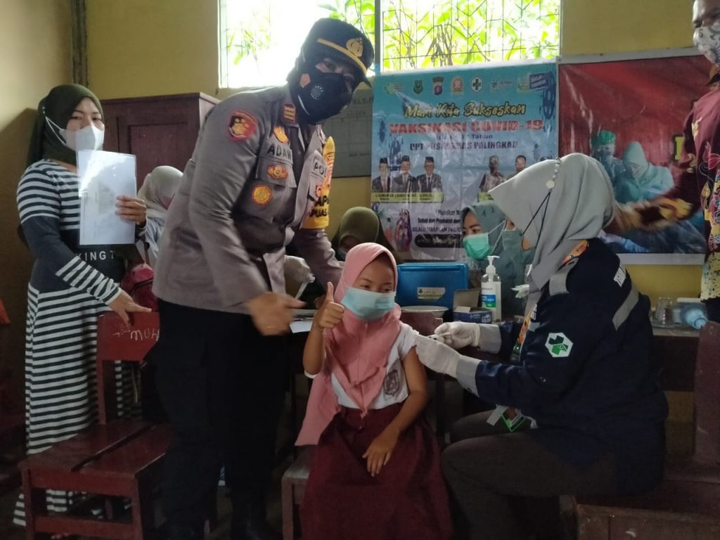 “Vaksinasi yang berlangsung di sekolah ini merupakan vaksinasi bagi anak-anak usia 6-11 tahun dan ini kita kejar mengingat anak-anak sudah mulai PTM di sekolahnya,” jelas Kapolsek.
