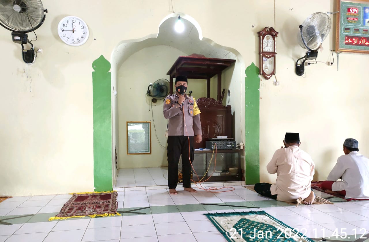 Pangkalan Bun, infokalteng.co.id – Polsek Arut Utara (Aruta), Briptu Dian lakukan safari Jum’at di Masjid Miftahul Jannah Kel Pangkut, Kec. Arut Utara, Kab. Kotawaringin Barat Prov. Kalimantan Tengah, Jum’at (21/01) siang.
