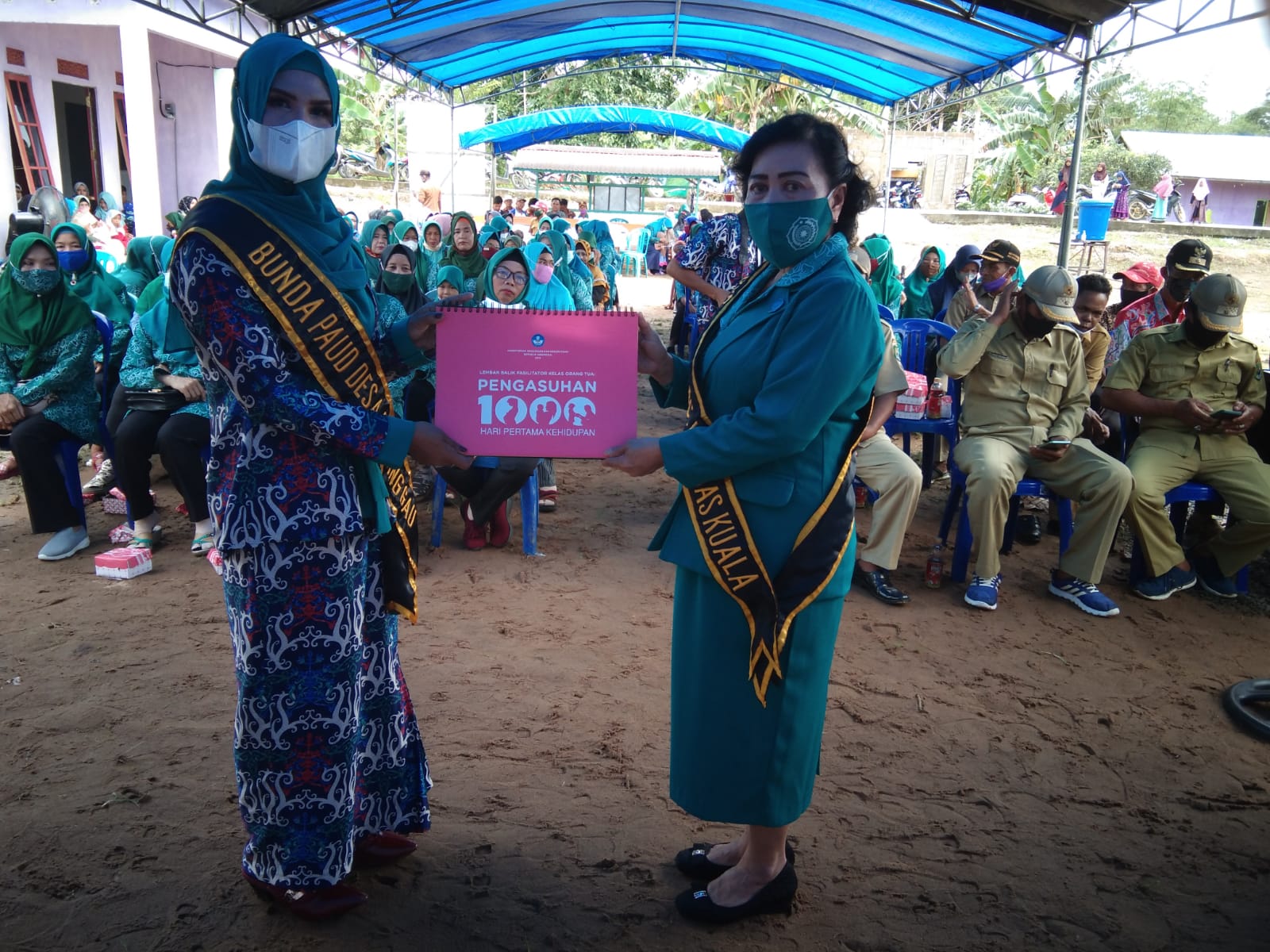 Prosesi diawali dengan menyanyikan lagu Indonesia Raya dilanjutkan dengan Mars PAUD, berakhir dengan pemasangan selempang Bunda PAUD serta penyerahan buku pedoman pengasuhan 1000 hari pertama kehidupan oleh Bunda PAUD Kecamatan Kapuas Kuala.