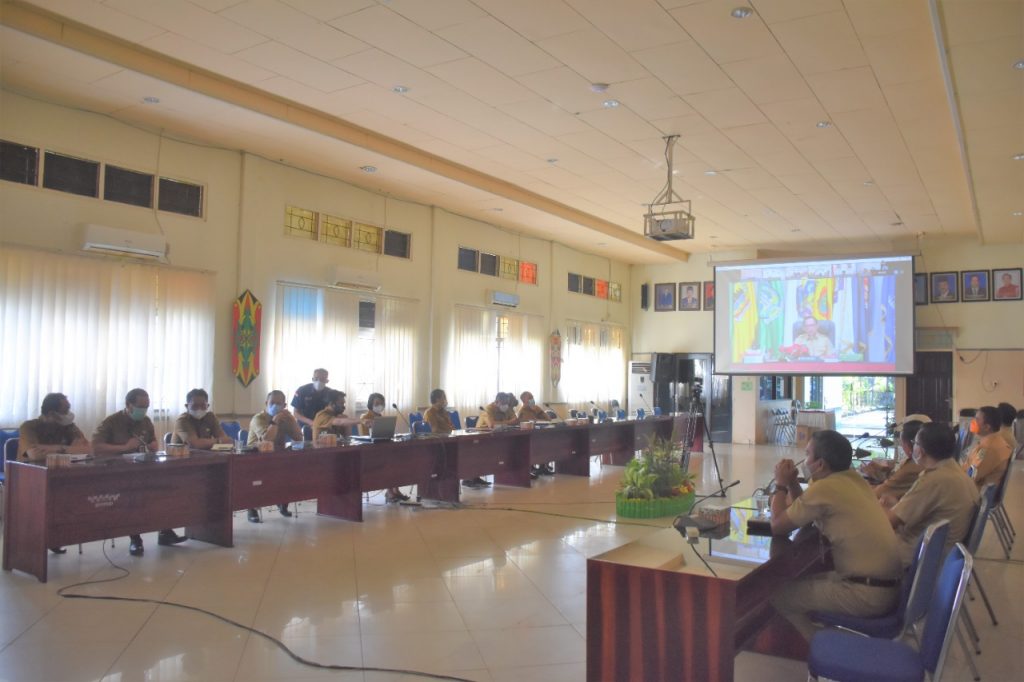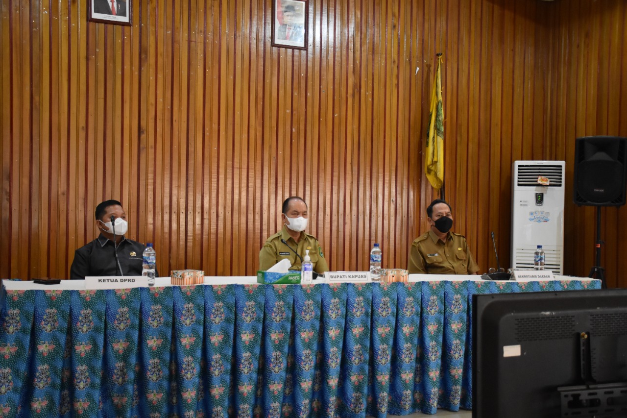 Kuala Kapuas, infokalteng.co.id – Bupati Kapuas Ir.Ben Brahim S Bahat,MM MT menghadiri Rapat Kerja Bersama Kementerian Dalam Negeri dalam rangka evaluasi program strategis kegiatan Pemerintah Daerah. Kegiatan ini dihadiri secara virtual dari Aula Bappeda Kapuas, Senin (24/1).