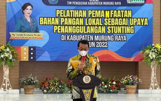 Murung Raya, infokalteng.co.id – Drs. Perdie M, Yoseph Bupati Kabupaten Murung Raya didampingi ketua TP-PKK, Murung Raya dr. Lynda Kristiane, secara resmi buka pelatihan pemanfaatan bahan pangan lokal sebagai upaya penanggulangan Stunting. Kegiatan tersebut di gelar di aula rumah Jabatan Bupati Kota Puruk Cahu, Sabtu (4/6/2022).