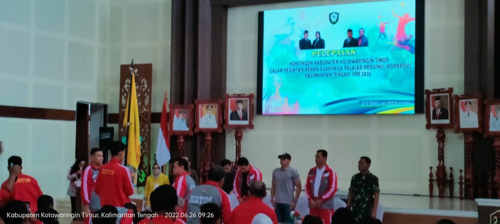 Sampit, infokalteng.co.id – Dandim 1015/Sampit Letkol Inf Abdul Hamid., S.I.P yang di wakili oleh Pasi ops Kodim 1015/Sampit Kapten Inf Supriyanto menghadiri kegiatan pelepasan konting kabupaten Kotawaringin timur dalam kegiatan pekan olahraga pelajar provinsi Kalimantan tengah tahun 2022 yanh bertempat di aula Rumah Jabatan Bupati Kotawaringin Timur, Minggu (26/6).