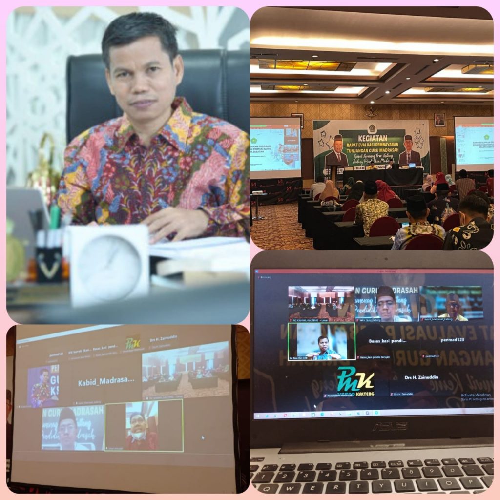 Palangka Raya, infokalteng.co.id – Dalam rangkaian kegiatan Rapat Evaluasi Pembayaran Tunjangan Guru Madrasah, Seksi Guru Bidang Pendidikan Madrasah Kanwil Kementarian Agama Provinsi Kalimantan Tengah menghadirkan narasumber Direktur Guru dan Tenaga Kepenidikan (GTK) Madrasah Kementerian Agama RI, Dr. Muhammad Zain, S.Ag., M.Ag. secara daring.