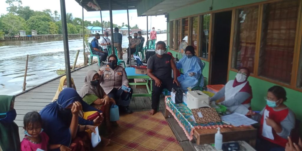 Kuala Kapuas, infokalteng.co.id – Dalam rangka meminimalisir penyebaran Covid-19 dan mendukung percepatan Program Vaksinasi Nasional, Kapolsek Kapuas Hilir AKP Volvy Apriana, S.Pd., M.A. turun langsung dengan didampingi Wakapolsek Kapuas Hilir dan anggota Polsek lainnya serta Babinsa Koramil 1011-02/Kps Hilir melaksanakan sambang door to door ke perumahan warga di Kel. Mambulau Kec. Kapuas Hilir Kab. Kapuas, Kalteng, Senin (6/12).