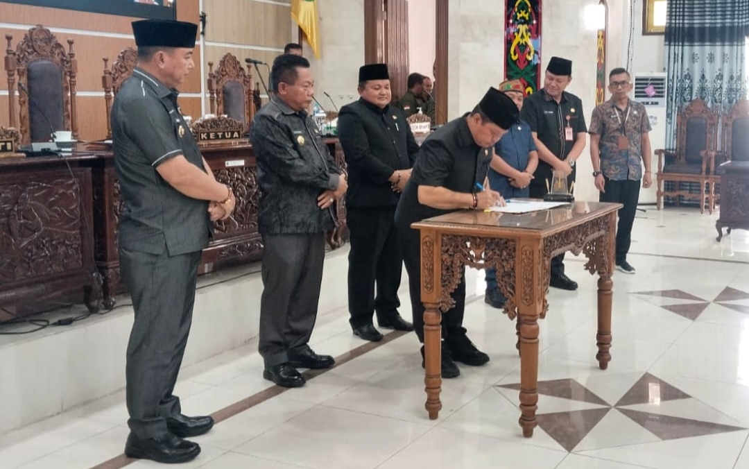 Agenda ketiga dilanjutkan dengan penandatanganan persetujuan bersama antara DPRD dan Pemerintah Kabupaten Kapuas atas Raperda tentang Pemekaran Kecamatan Mantangai serta pembentukan dua kecamatan baru tersebut.