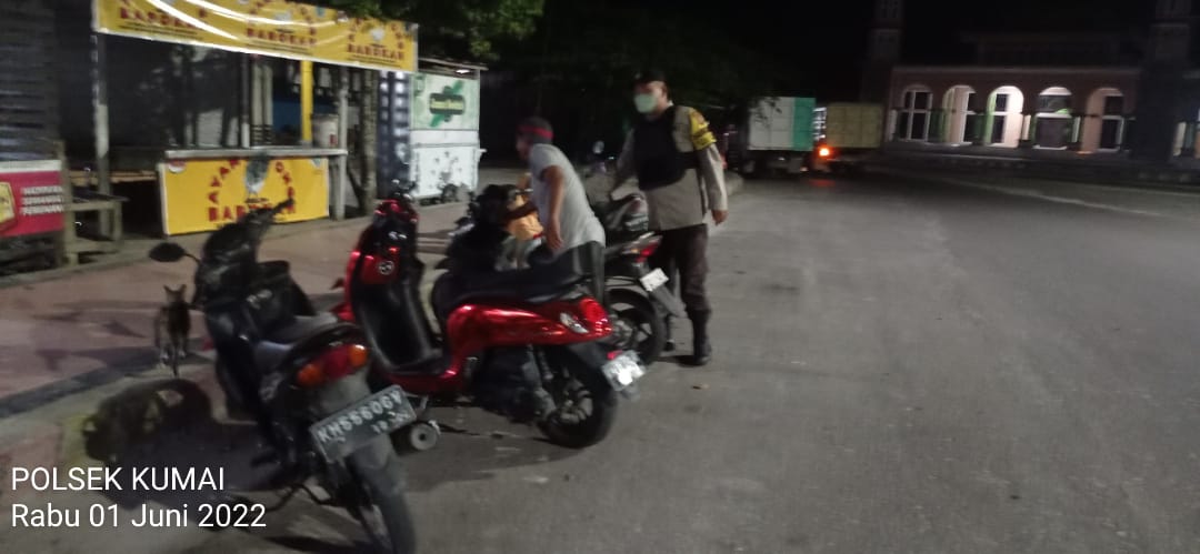 Pangkalan Bun, infokalteng.co.id – Polres Kotawaringin Barat (kobar) Jajaran Polda Kalimantan Tengah – Dipimpin KASPKT 3 (Tiga) Polsek Kumai Polres Kobar Aiptu Agus Sugianto, melaksanakan patroli di Jalan raya sekitar Bundaran Bahari Desa Sungai Kapitan, sebagai titik potensial untuk trek – trekan atau balapan liar terutama malam hari, (01/06/2022).