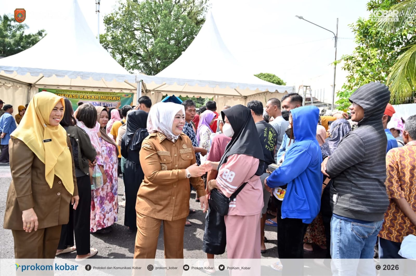 Bupati Kobar Hj. Nurhidayah, menyampaikan bahwa kegiatan pasar murah ini merupakan salah satu langkah pemerintah daerah dalam mengendalikan inflasi menjelang hari besar keagamaan.