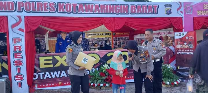 Pangkalan Bun, infokalteng.co.id – Kanit Regident Sat Lantas Polres Kotawaringin Barat Ipda Kris Novi Handayani memberikan kuis di stand polres kotawaringin barat dalam kegiatan kobar expo di Pangkalan Bun Park Jalan H.M Rafi’i Kelurahan Madurejo Kecamatan Arut Selatan Kabupaten Kotawaringjn Barat Provinsi Kalimantan Tengah, Sabtu (04/12) pagi.