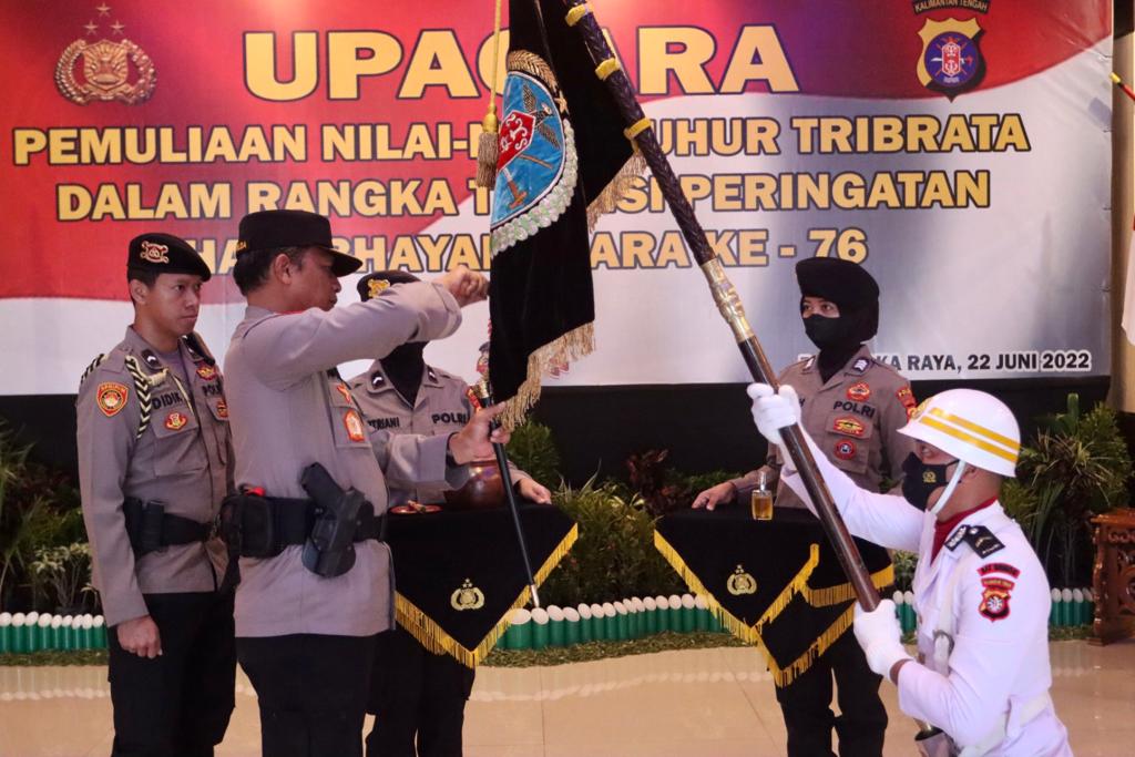 Prosesi pencucian pataka tersebut, dipimpin langsung oleh Kapolda Kalteng Irjen Pol Drs. Nanang Avianto, M.Si. bertempat di Loby Mapolda setempat, Jl. Tjilik Riwut Km. 1, Kota Palangka Raya, Rabu (22/06/2022).