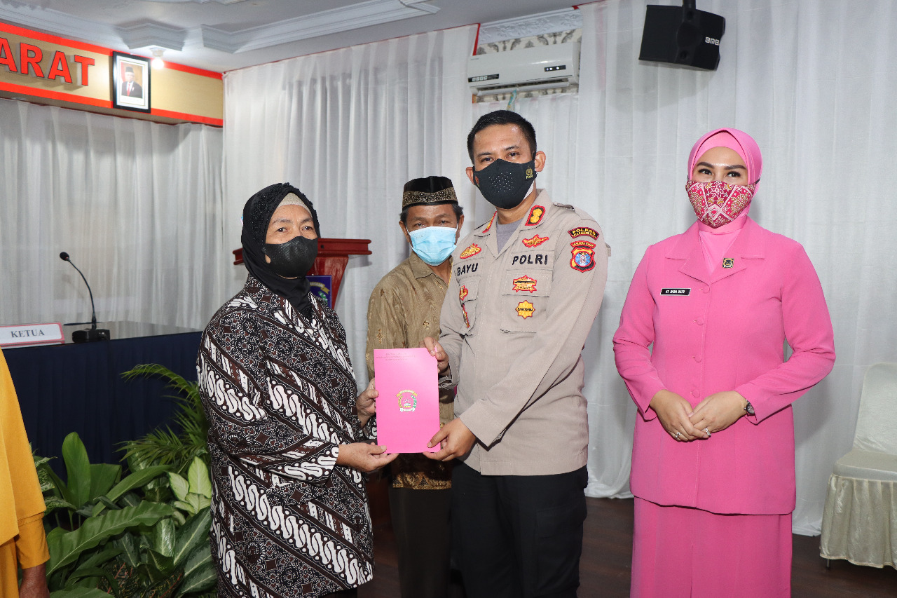 Saat Kegiatan, Kapolres beserta istri memberikan tali asih kepada purnawirawan serta warakawuri yang hadir.