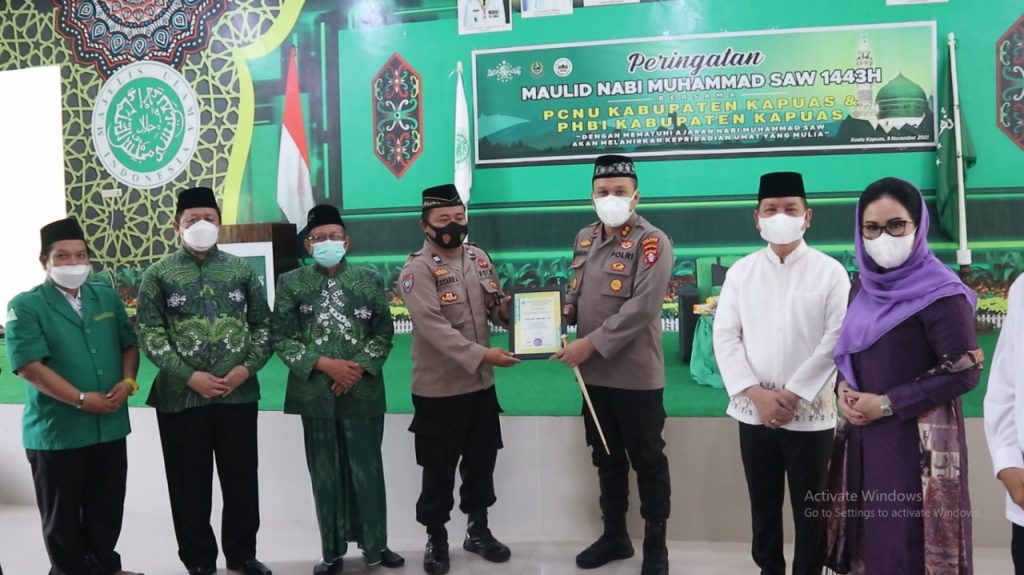 Di akhir kegiatan tersebut PCNU memberikan piagam penghargaan kepada bupati Kapuas atas bantuan pembangunan kantor sekretariat bersama MUI dan NU Kab Kapuas serta penghargaan kepada Personel Polres Kapuas Aiptu Syarif Azhari S.Pd atas dedikasi yang tinggi dalam melakukan pembinaan kepada masyarakat di bidang keagamaan. (humasres)