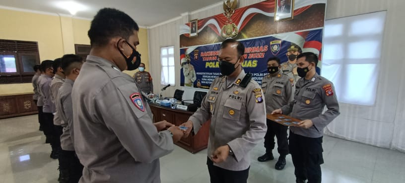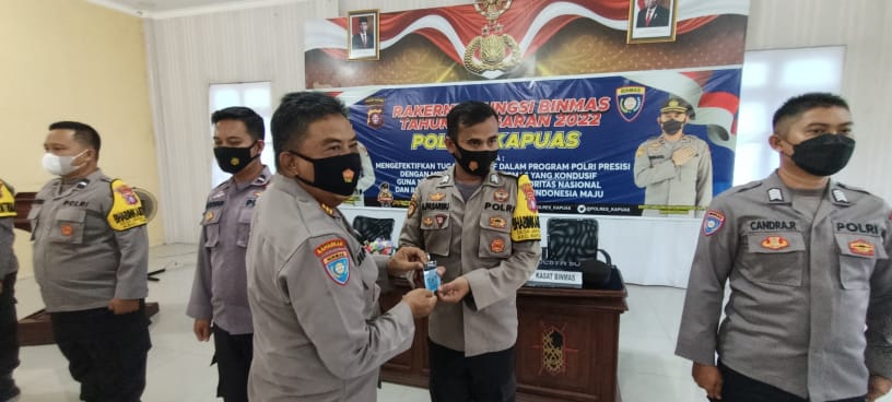 Untuk mewujudkan hal tersebut, Kapolres Kapuas AKBP Qori Wicakono, S.I.K. didampingi Kasat Binmas Polres Kapuas AKP Jimin menyerahkan kartu barcode dumas presisi kepada perwakilan bhabinkamtibmas di aula tingang menteng panunjung tarung Polres Kapuas.