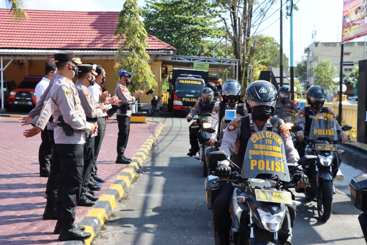 Dalam Arahannya, Kapolres Kobar sampaikan kepada anggota satsamapta agar tetap melaksanakan tugas dengan baik dan semangat, selalu menyampaikan kepadanya protokol kesehatan seperti wajib menggunakan masker kepada masyarakat saat beraktivitas di luar rumah, menjaga, dan rajin mencuci tangan menggunakan sabun dan udara sebagai upaya mencegah penyebaran covid -19.