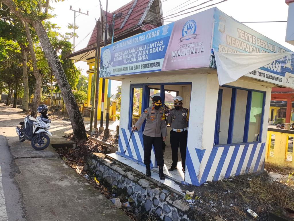 Didampingi oleh Kasatlantas Polres Kobar IPTU Bayu Caesaria, S.T.K., S.I.K. Kapolres Kobar meninjau situasi sekitar pos lalu lintas demi memastikan kelayakan dan renovasi yang akan dilakukan dipos tersebut.