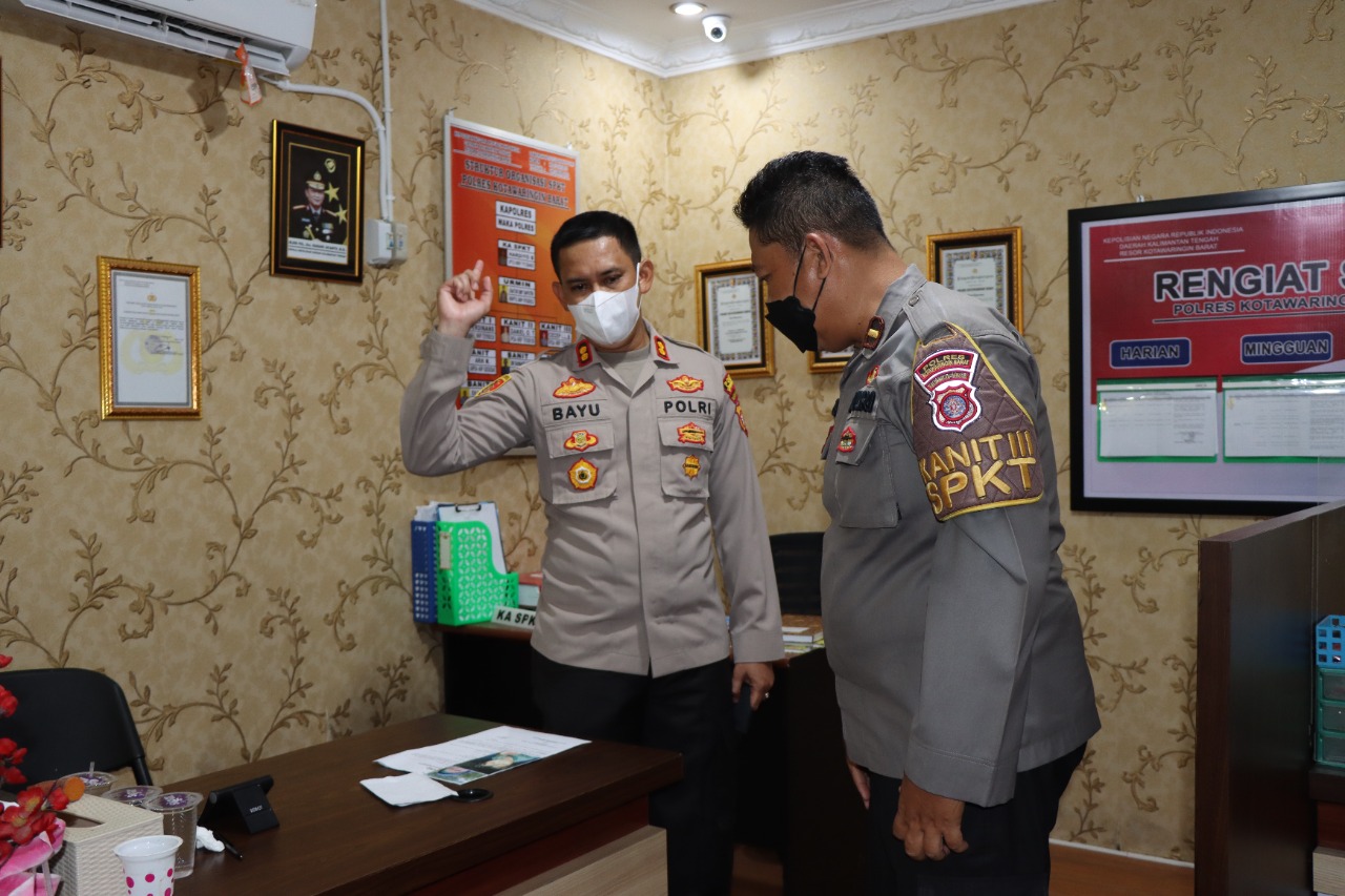 Pangkalan Bun, infokalteng.co.id – Kapolres Kobar Polda Kalteng AKBP BAYU WICAKSONO, S.H., S.I.K., M.Si mengecek kesiapan anggota piket SPKTD, Sabtu (02/04/22).