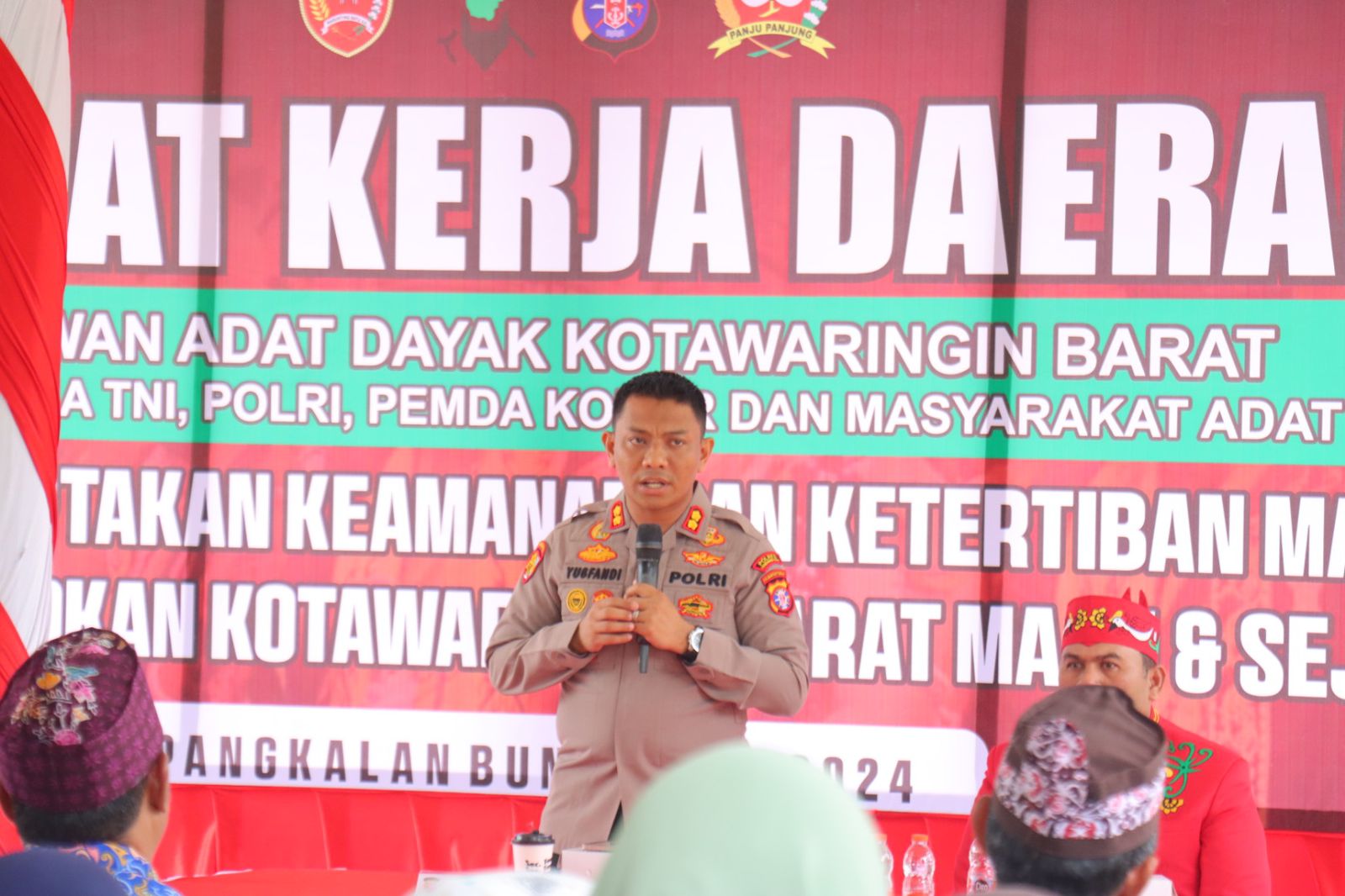 Pangkalan Bun, infokalteng.co.id – Kapolres Kotawaringin Barat (Kobar) AKBP Yusfandi Usman, menghadiri kegiatan rapat kerja daerah (Rakerda) Dewan Adat Dayak (DAD) Kobar yang bertempat di Rumah Betang, Jalan Utama Pasir Panjang, Desa Pasir Panjang, Kec. Arut Selatan (Arsel), Kab. Kobar, Minggu pagi.