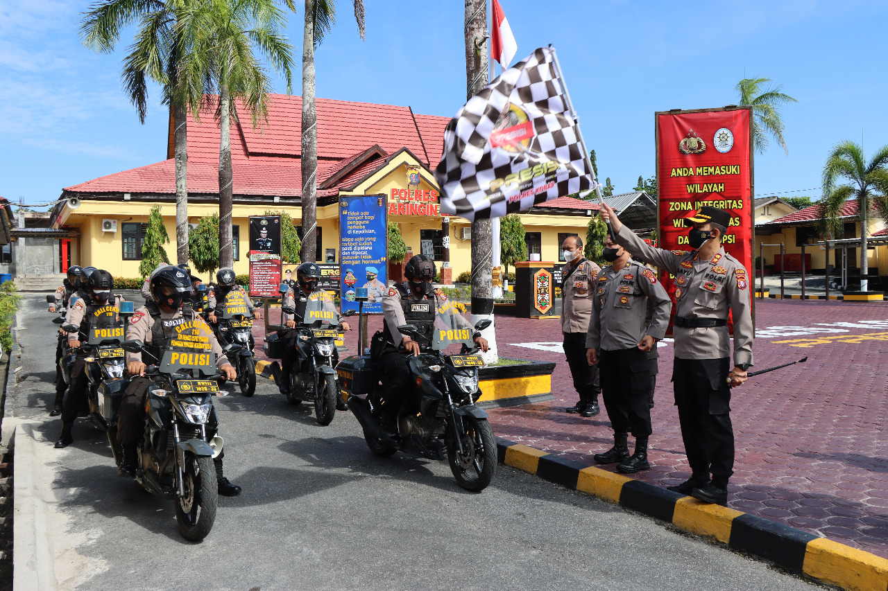 Seperti pada Sabtu (9/4/2022) siang, Kapolres Kotawaringin Barat AKBP Bayu Wicaksono., S.H., S.I.K., M.Si melepas langsung pelaksaan patroli R2 samapta polres kobar.