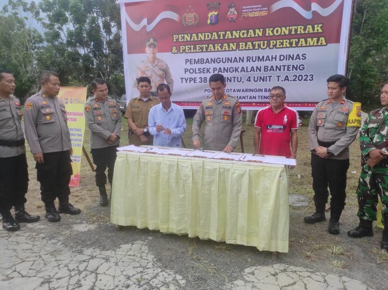 Pangkalan Bun, infokalteng.co.id – Peletakan batu pertama pembangunan Asmara Polsek Pangkalan Banteng Polres Kobar jajaran Polda Kalteng oleh Kapolres Kobar berlangsung hari ini, Selasa (2/5).