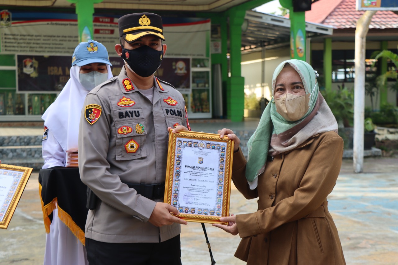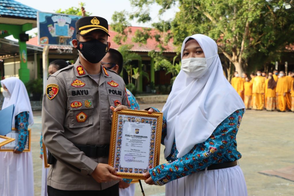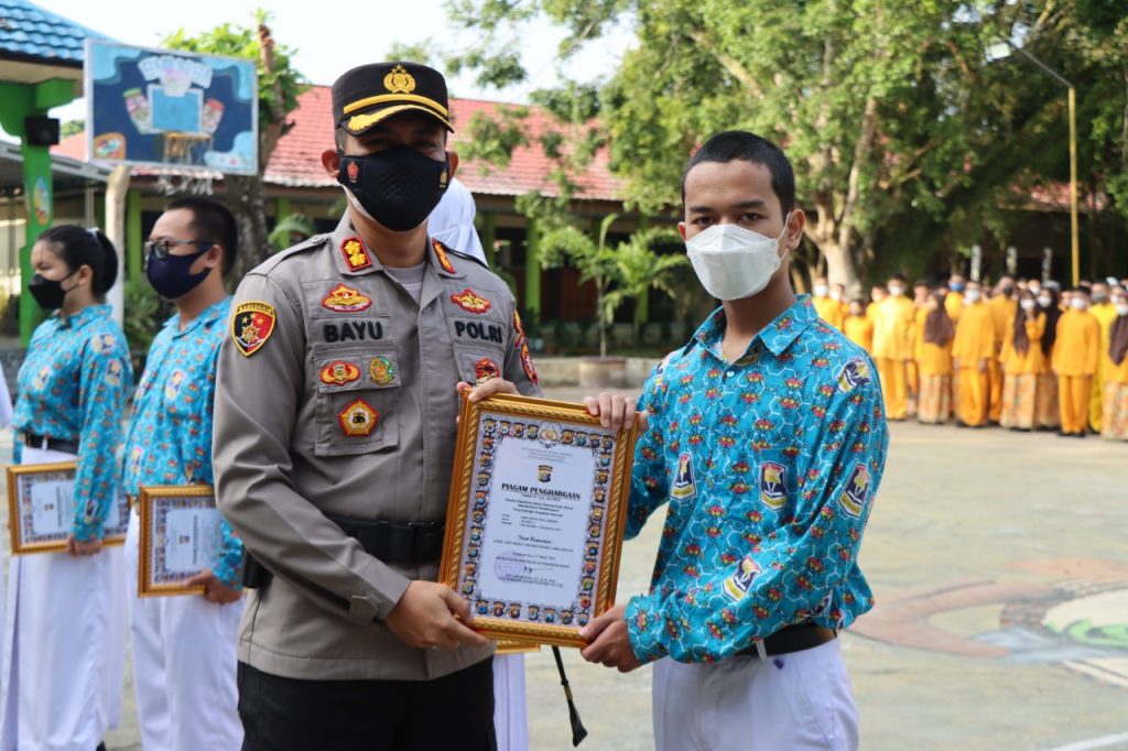 Bapak Kapolres Kotawaringin Barat memimpin langsung kegiatan upacara pemberian penghargaan terhadap Guru dan siswa berprestasi di SMA N 1 Arsel Jalan Ali Pandi Sarjan Kel. Sidorejo Kec. Arsel Kab. Kotawaringin Barat. Bapak Kapolres berkesempatan mengambil apel sekaligus memberikan penghargaan kepada guru dan Siswa-siswi SMA N 1 Arsel yang berprestasi. Dalam sambutannya Bapak Kapolres menghimbau agar para siswa-siswi tidak terlibat dengan pelanggaran apapun dan selalu mematuhi Protokol Kesehatan untuk memutus penyebaran virus Covid-19 di wilayah Kotawaringin Barat, Selasa (29/3) pagi.