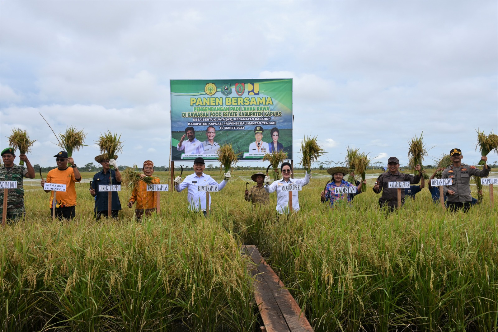 Dikatakannya juga bahwa panen padi di Desa Bentuk Jaya, Kecamatan Dadahup kali ini menjadi bukti akan keberhasilan pengembangan padi didaerah rawa yang dapat dilakukan melalui tata kelola air yang baik.