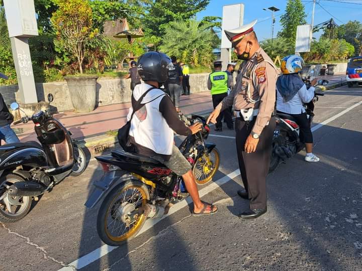 Pangkalan Bun, infokalteng.co.id – Jajaran Satuan Lalu Lintas (satlantas) Polres Kotawaringin Barat terus melakukan penindakan terhadap pengendara yang memakai knalpot bising atau brong.