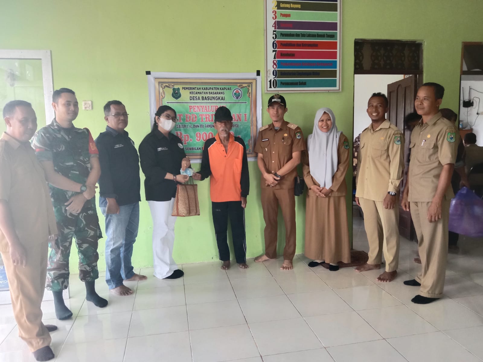 Kuala Kapuas, infokalteng.co.id – Kepala desa Basungkai Endang Sugianto Kecamatan Basarang telah membagikan BLT Dana Desa (DD) triwulan satu salur satu, dua dan tiga untuk warganya, yang mana warga telah menerima BLT dana desa sangat lah senang karenanya, Selasa lalu.