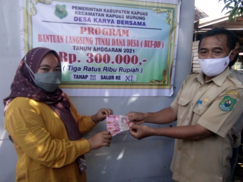 Kuala Kapuas, infokalteng.co.id – Kepala desa Karya Bersama Mahrani bagikan dana desa tahap dua salur sepuluh dan dana desa tahap tiga salur sebelas, Selasa (22/11).