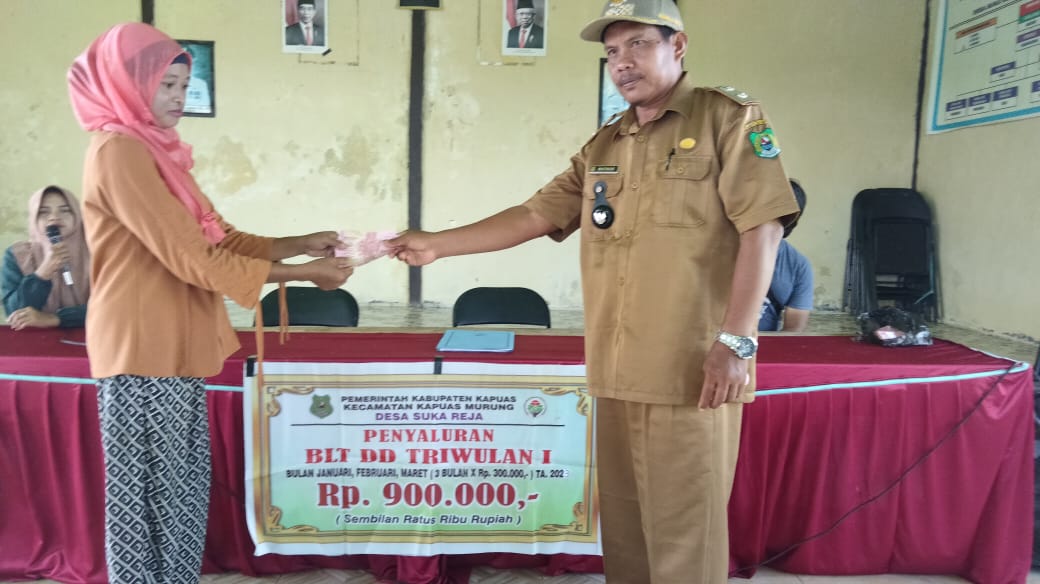 Harapan dari kepala desa Suka Reja, dengan dibagikannya BLT dana desa ini semoga uangnya bisa dimamfaat kan dengan sebaik baiknya dan semoga bisa mengurangi beban bapak, ibu dan juga bisa digunakan untuk keperluan hari raya Idul Fitri ini, pungkas Kepala desa Suka Reja Kecamatan Kapuas Murung.