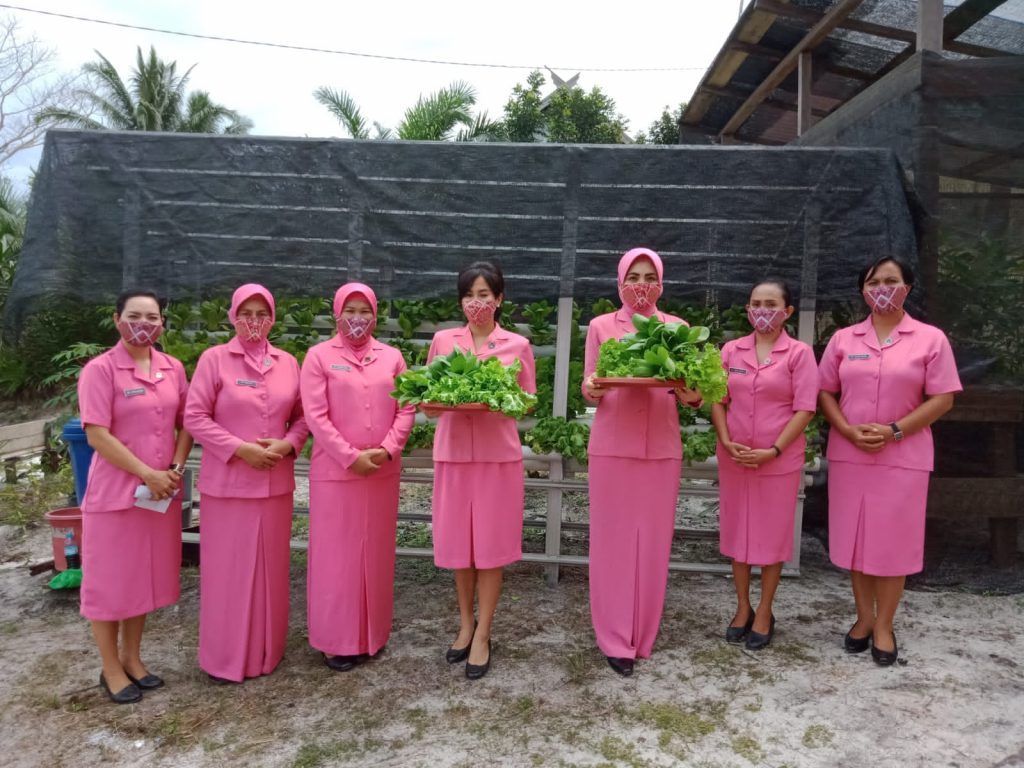 Kegiatan di Ranting Banama Tingang, diawali dengan peninjauan dan panen sayur di Pekarangan Pangan Lestari (P2L) dan penebaran benih ikan patin di kolam bhayangkari serta meninjau taman baca. Kegiatan kemudian dilanjutkan dengan tatap muka dan pengecekan buku-buku bhayangkari.