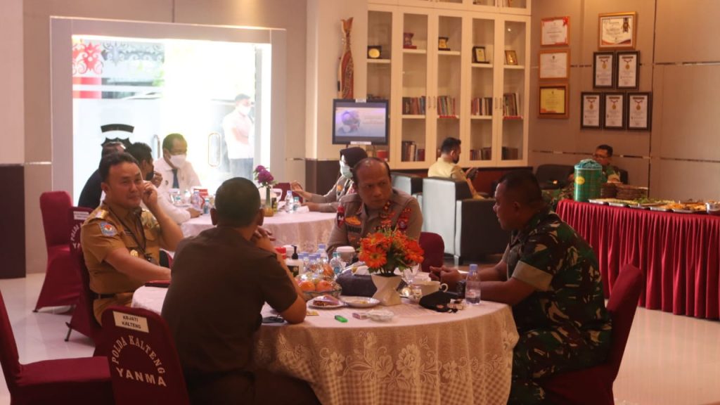 Palangkaraya, infokalteng.co.id – Guna meningkatkan Sinergitas, Polda Kalteng melaksanakan Coffe Morning bersama Forkopimda bertempat di Lobi Rastra Sewakottama Mapolda Kalteng, Senin (29/11).