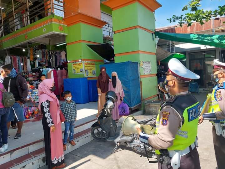 Kegiatan yang dilakukan Kanit Kamsel Satlantas Polres Kotawaringin Barat Aipda Sigit Widodo menghimbau kepada para pedagang dan masyarakat pengunjung di pasar Indra Kencana, agar selalu menggunakan Masker saat beraktifitas berkerja untuk mencegah tertular Covid 19, walaupun kita sudah di Vaksin namun tetap jangan lengah terhadap protokol kesehatan. dan dalam himbauannya juga mengajak agar mensukseskan Vaksinasi Nasional yang diadakan pemerintah dan bagi yang belum di vaksin silahkan datang Gerai Vaksin Presisi yang di adakan oleh Polres Kobar, silahkan datang, ajak saudara dan kerabat karena Vaksin yang di berikan gratis.