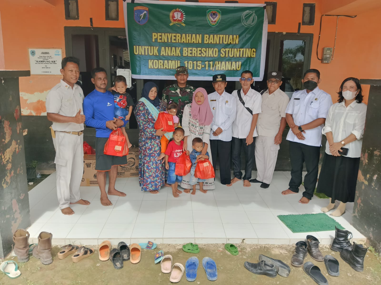 “Bantuan yang diberikan ini diharapkan dapat bermanfaat dalam membantu kebutuhan asupan gizi dan vitamin balita stunting,” ujar Danramil 1015-11/Hanau Kapten Inf Maspur.