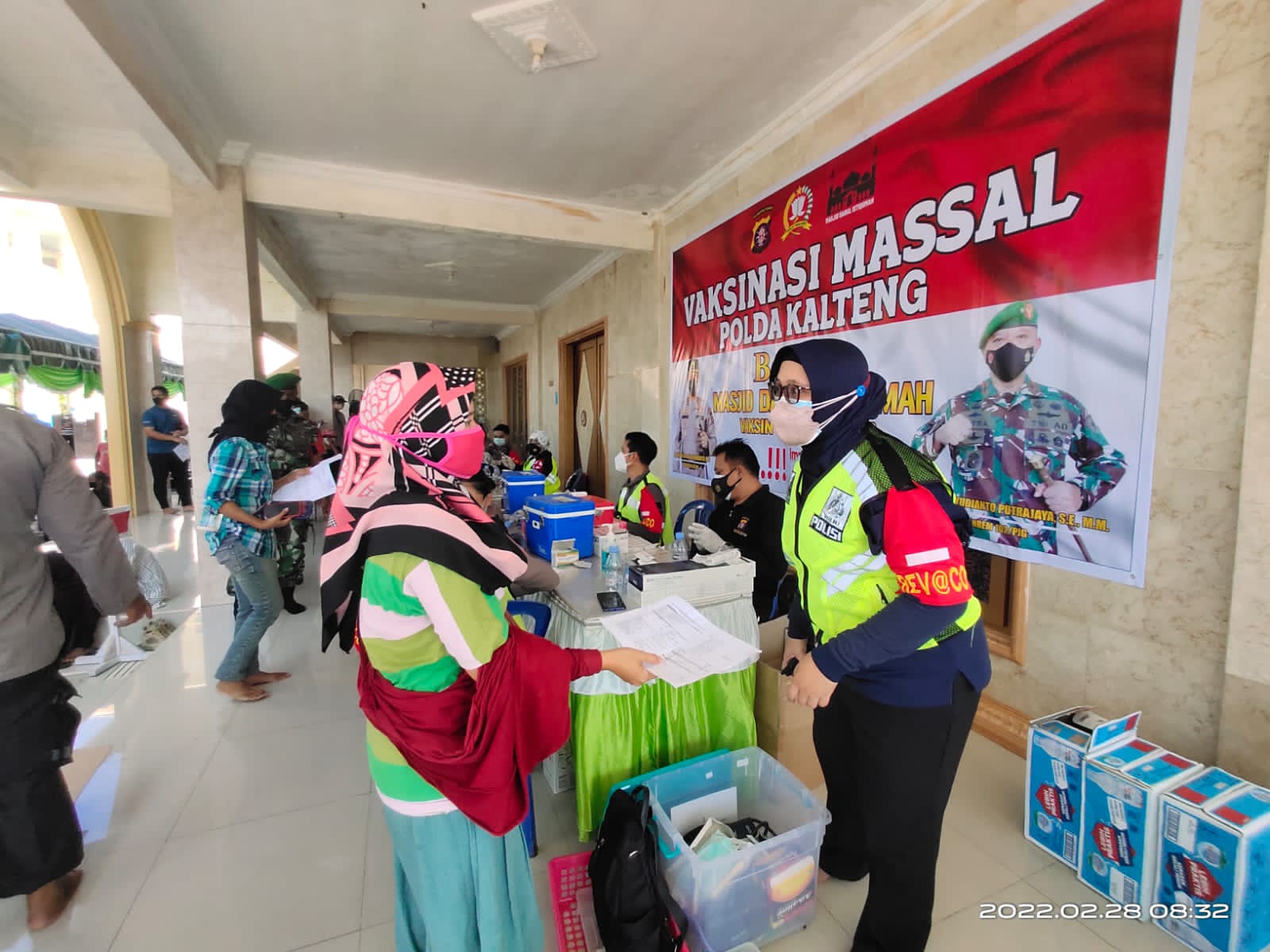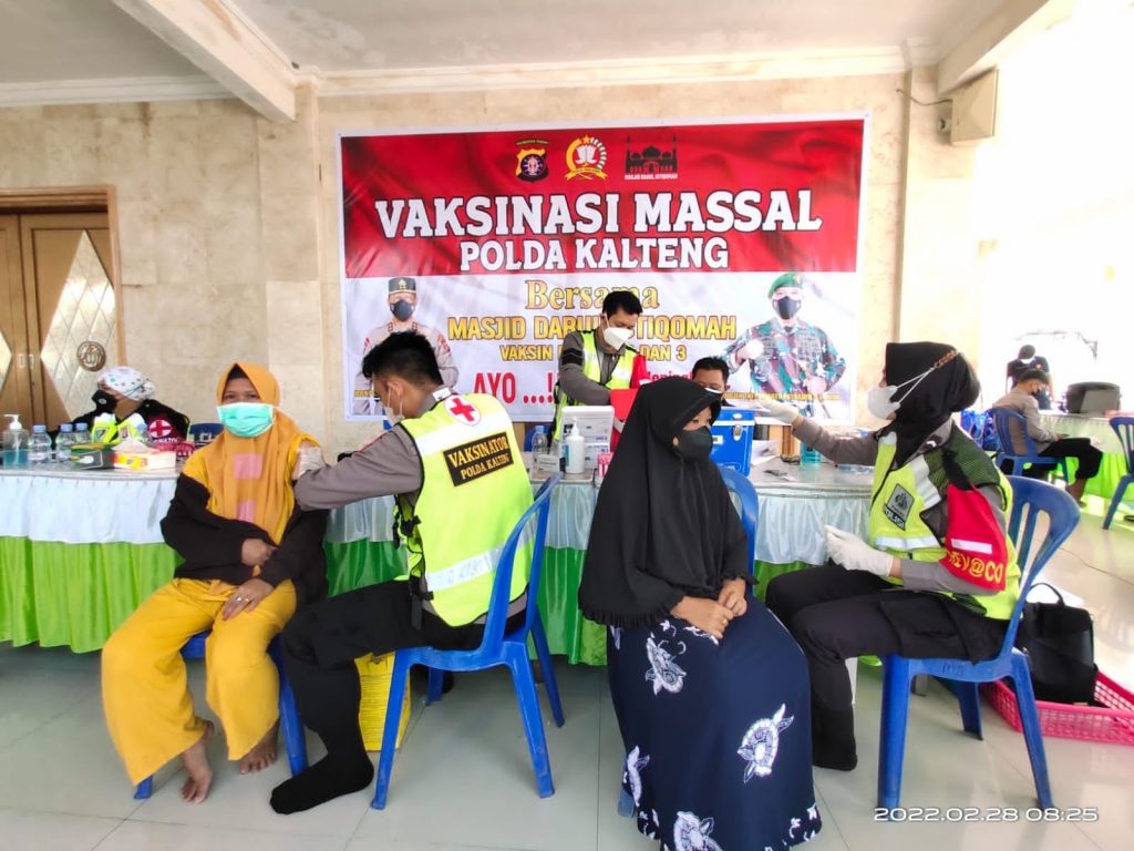 Terbukti walaupun hari libur, Polda Kalteng melalui Bidang Kedokteran Kesehatan (Biddokkes) memberikan layanan vaksinasi melalui Gerai Vaksin Presisi yang bertempat di Masjid Darul Istiqomah, Jl. Bapuy Kota Palangka Raya, Senin (28/2) pagi.