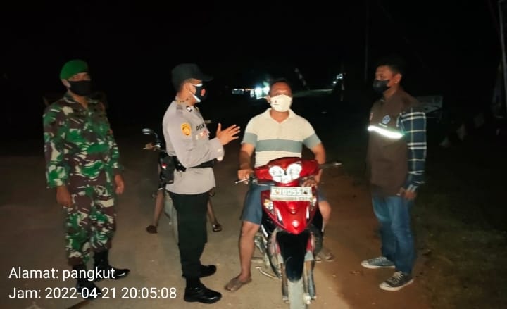 Pangkalan Bun, infokalteng.co.id – Jajaran Polda Kalteng, Briptu Dian imbau masyarakat Kel. Pangkut untuk mentaati prokes dengan sungguh – sungguh. Kamis (21/04/2022) malam.