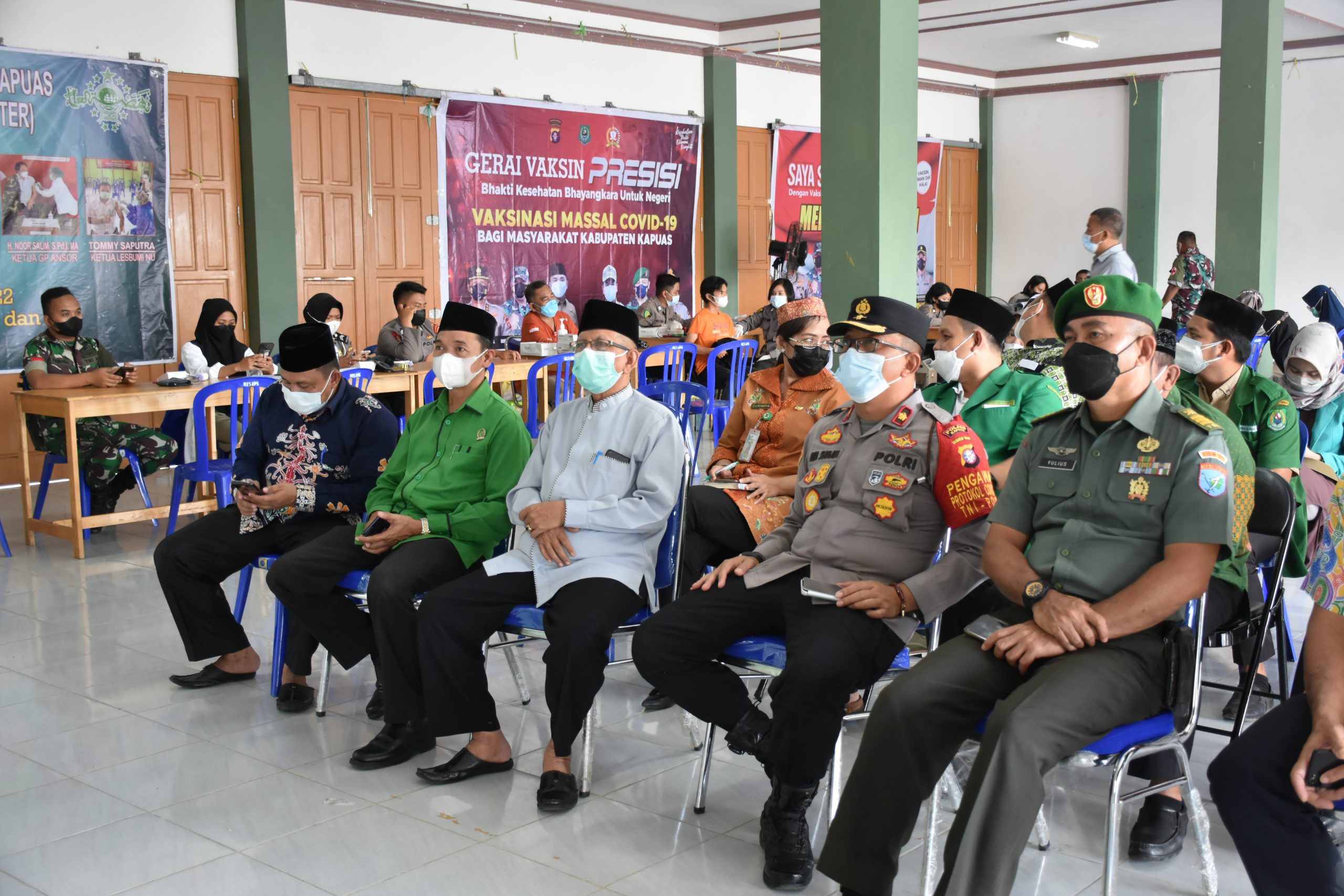 Hadir dalam kegiatan tersebut Ketua PCNU Kabupaten Kapuas Drs H. Nurani Sarji, Wakil Ketua NU Kabupaten Kapuas Dr H. Junaidi, Ketua GP Anshor Kapuas H Noor Salim, Perwakilan Polres Kapuas Kompol Edia Sutaata, Kepala Kantor Kemenag Kapuas Hamidhan, Forkopimda Kapuas, para Vaksinator dan peserta Vaksinasi.