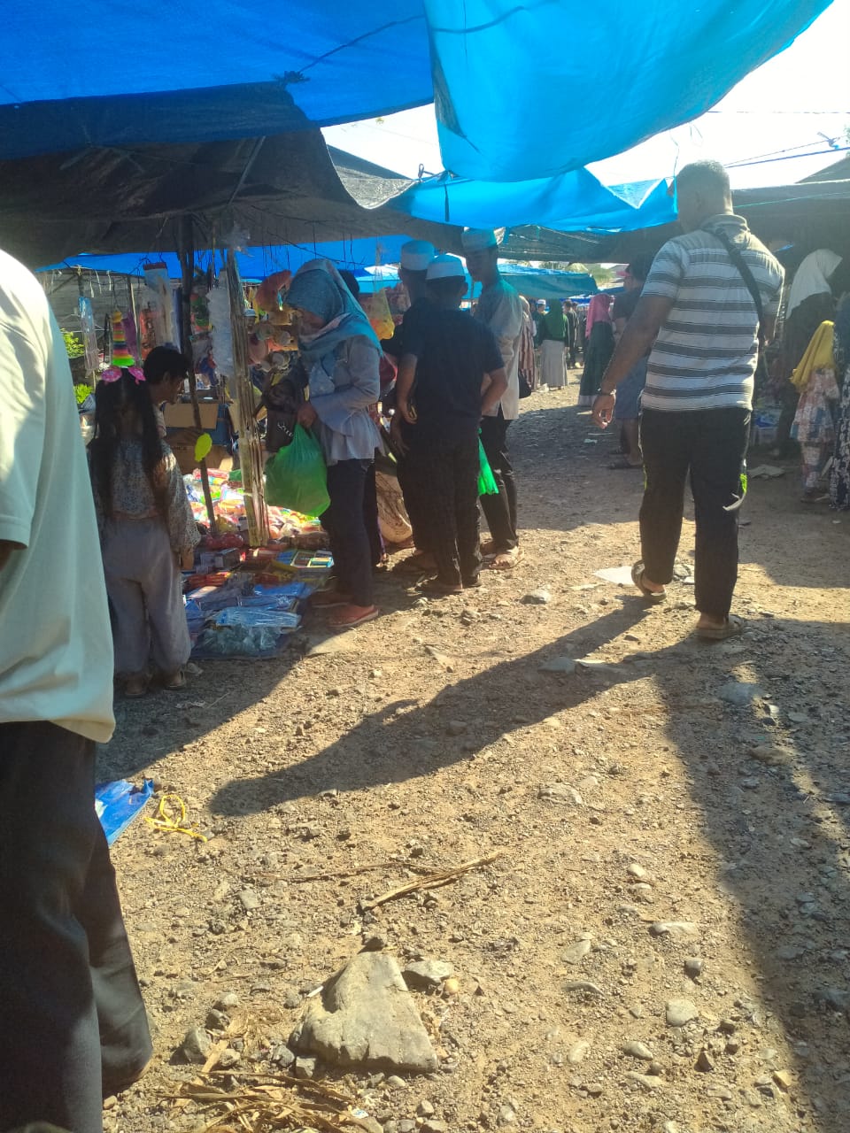 Ada bermacam-macam yang di jual para pedagang, ada sayur mayur, buah-buahan,asam bawang, baju pakaian, mainan, ayam dan ikan, kurma, minyak harum, kupiah dan masih banyak lagi macam-macam yang di jual para pedagang.