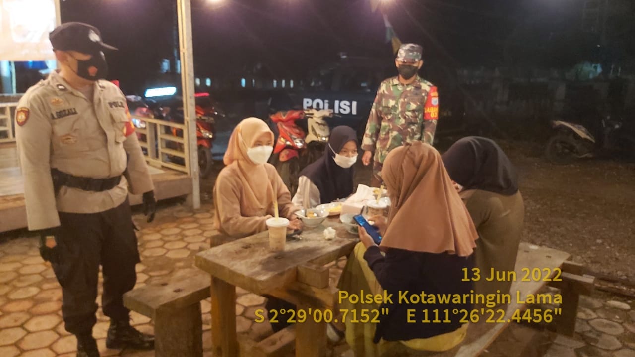Pangkalan Bun, infokalteng.co.id – Polsek Kolam. Polres Kobar. Polda Kalimantan Tengah. Tiga pilar kecamatan kolam melakukan kegiatan yustisi malam dengan sasaran cafe dan pertokoan tempat berkumpulnya warga masyarakat dan tongkrongan anak muda, Senin (13/06/2022) malam.