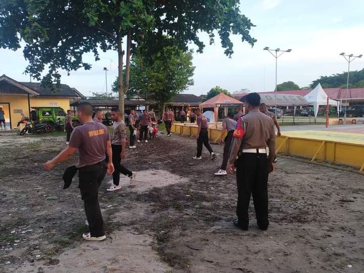 Dengan menggunakan olahraga, para siswa yang berjumlah 27 orang tersebut bisa bahu membahu guna membersihkan lapangan voli yang menjadi kebanggaan Polres Kobar.