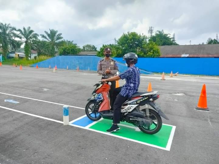 Pangkalan Bun, infokalteng.co.id – Briptu Mahesa surya selaku BA uji praktek satlantas polres kobar melaksanakan pendampingan ujian praktek R2 (16/06/2022) pagi.
