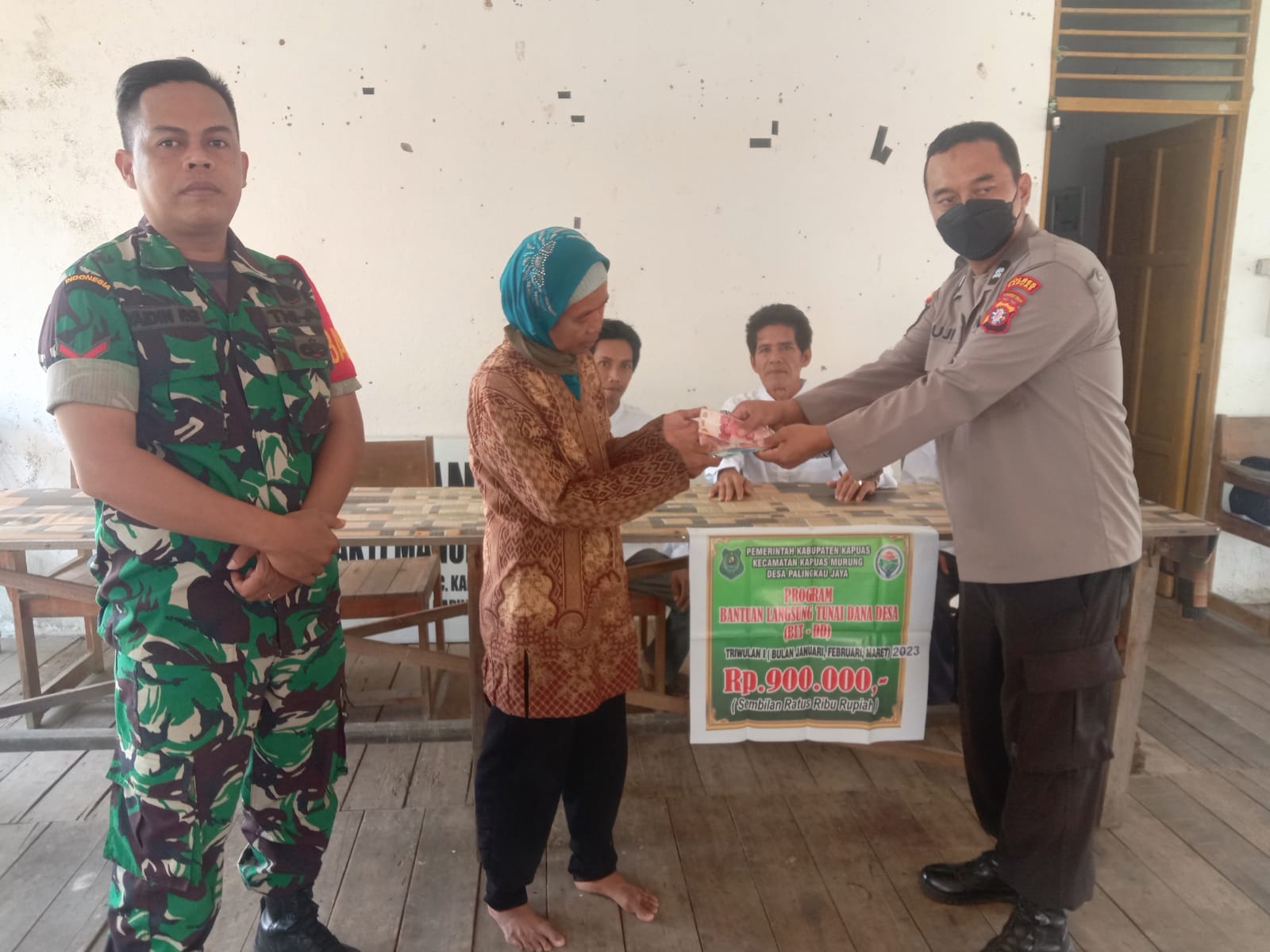 Pembagian BLT dana desa dihadiri langsung Babinsa, Khamtibmas, Ketua BPD, PD, PLD,ketua RT dan tokoh masyarakat desa Palingkau Jaya.