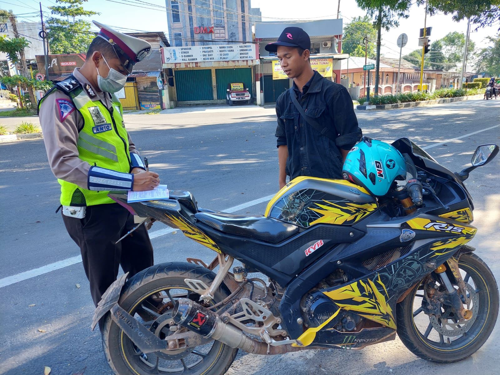 Seperti halnya yang dilakukan pada Personel Patroli Roda dua Satlantas Polres Kobar pagi ini sabtu (23/04/2022) Aipda slamet trianto,menindak dengan memberikan Surat Tilang kepada pengendara Sepeda Motor yang tertangkap tangan telah menggunakan Knalpot Brong.