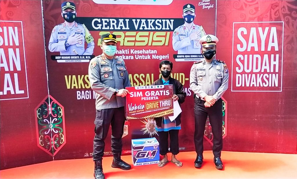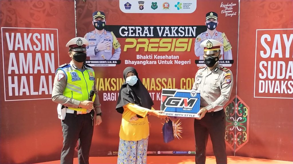 Dalam kegiatan tersebut Sat Lantas Polres Kapuas juga menyediakan door price berupa helm 5 buah dan Sim gratis bagi peserta vaksinasi dengan nomor undian yang diberikan personel Sat Lantas. Pemberian door price kepada pemenang diberikan langsung oleh Kapolres Kapuas. (humasres)
