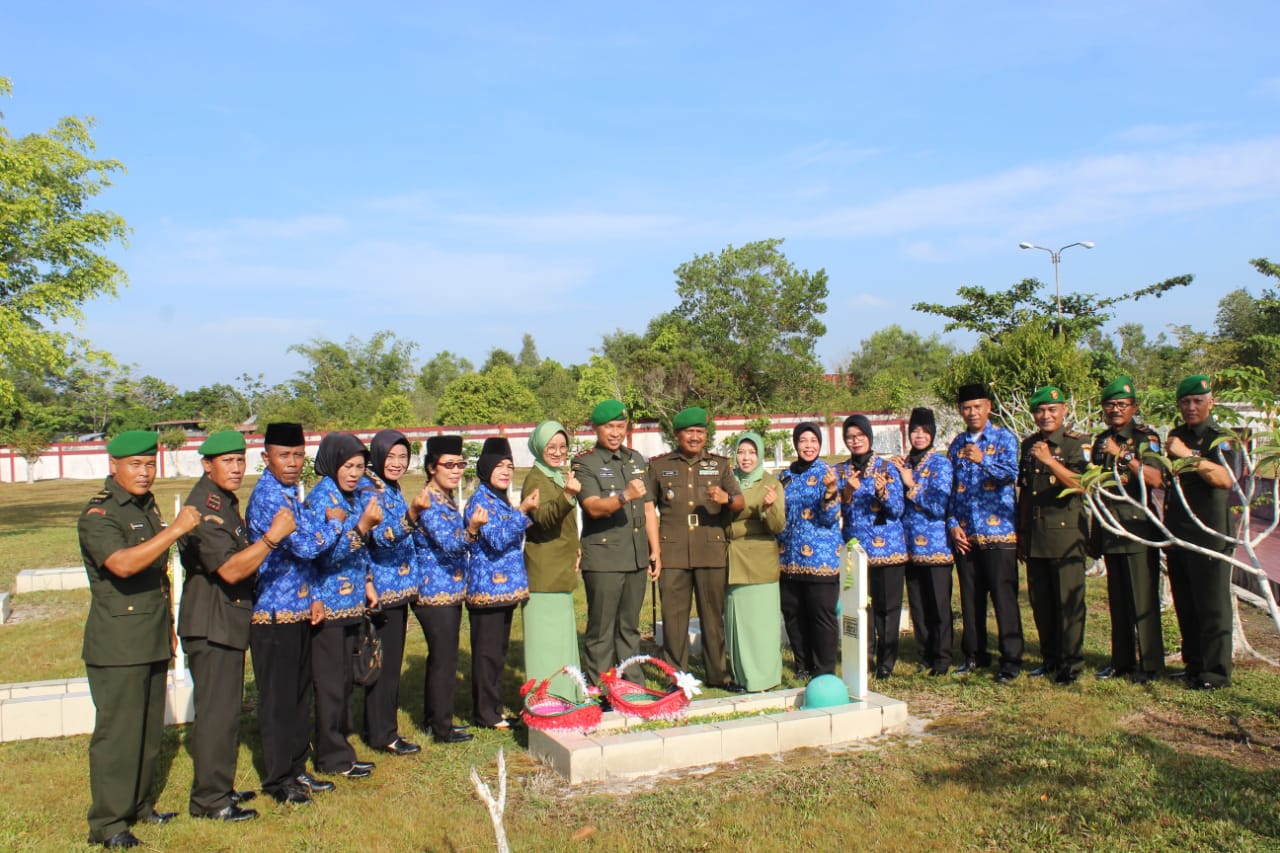 Upacara Ziarah Rombongan yang diikuti oleh para Perwira, Bintara, Tamtama dan Ketua Persit Kartika Chandra Kirana (KCK) Cabang XLI Dim 1015/Sampit beserta anggota yang tersusun dalam pasukan upacara.